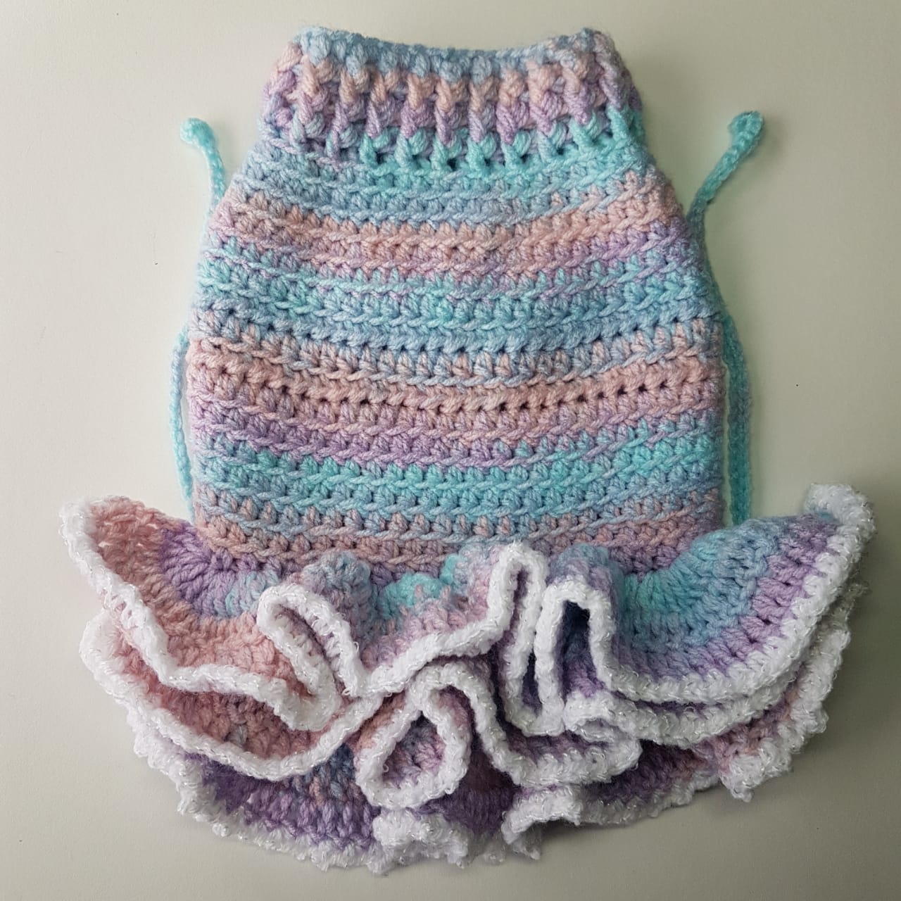Wrap your furry friend in cozy comfort with our Frilled Dog Sweater. Crafted with love and care for every wag and whisker. These lightweight wool sweaters are designed to fit your pet perfectly. With sizing options for small, medium, and large fur babies. Choose from a wide range of beautiful colors. Including Lavender, Vibrant, Sea Spray, Meadow Mist, Sea Borne, Lilium, Lagoona, and Tungsten Grey, to match your pet’s personality and style. The frill does have a tie up that ties up under your fur babies tummy to keep the frill in place. Made with acrylic yarn.